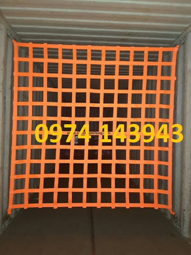 Lưới chắn container được dùng để treo tại cửa container với mục đích chống cho hàng hóa không bị rơi đổ khi mở cửa container tránh nguy hiểm cho người.